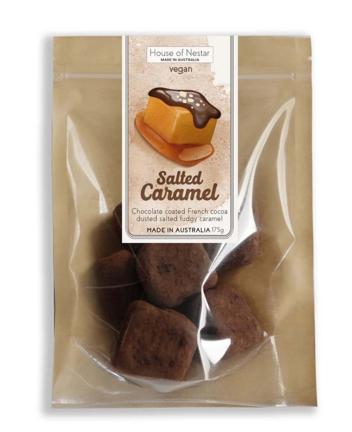 So Fudgy and delicious! These Vegan salted caramels are irresistible. Each salted caramel is finely layered with premium dark chocolate, and each bag is guaranteed to be handmade in Melbourne by head chocolatier, Issy Bilal.